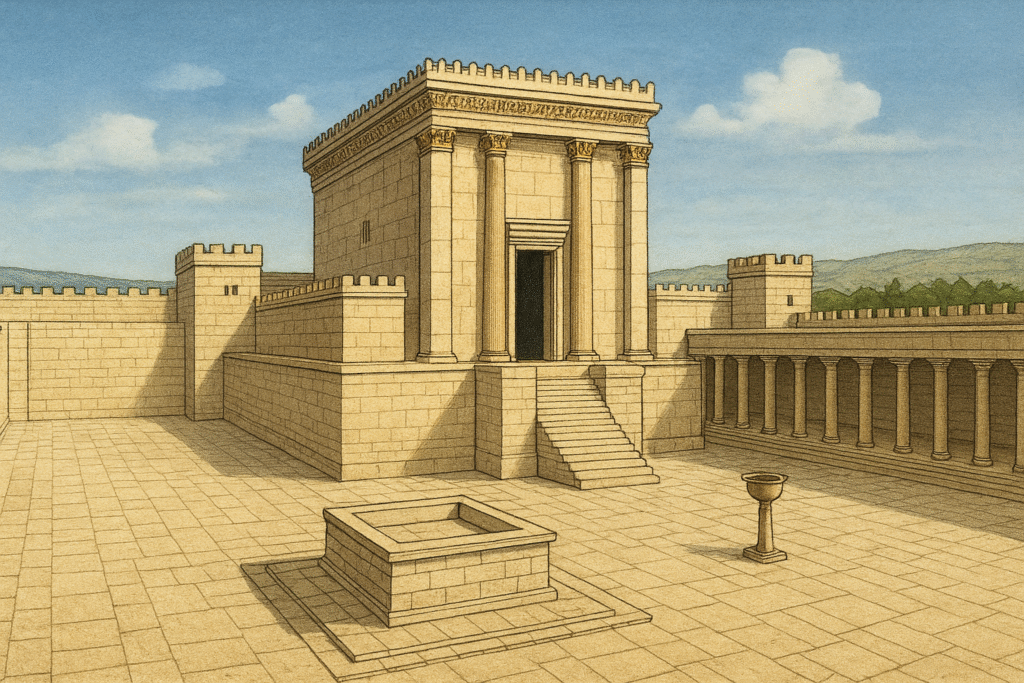Det första templet byggdes av kung Salomo omkring 957 f.Kr. och blev centrum för Israels gudstjänst fram till dess att det förstördes av babylonierna år 586 f.Kr. (1 Kung 5-8, 2 Krönikeboken 2–5).