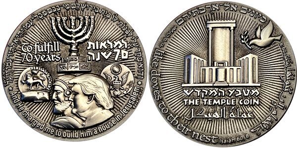”King Cyrus Donald Trump Limited Edition Israel silver temple coin” var ett mynt som trycktes upp i begränsade utgåva och som ryktas fungera som ett slags ”entre pass” till att få komma in det tredje templet när det väl är uppbyggt, men detta kan vara tomma rykten. Myntet delas ut till donatorer och väl utvalda personer. Mer om detta kan du läsa i sista artikeln i denna serie.