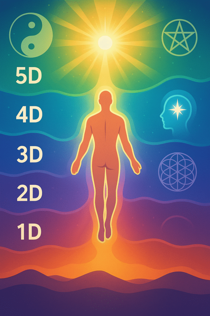 3D beskriver ett medvetande hos en människa som är fullt förankrad i den fysiska verkligheten. Här är fokus på individens jag, identitet, prestation och materiella villkor. Det är en dimension präglad av tid, rum, separation och dualitet – där vi ser oss själva som åtskilda från varandra och från något högre.