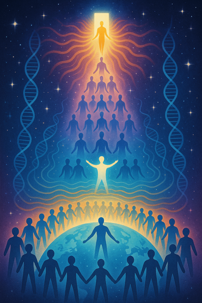 I enlighet med denna tankeskola så är det enbart när mänskligheten vandrar i gemensam formation som vi kan segra, ”Where We Go One, We Go All”. De menar på att vi alltså att vi ska sträva emot ett gemensamt förändrande av världen, och tillsammans gå från det tre-dimensionella sinnelaget vi lever på idag, och ska kollektivt jobba oss upp till ”den fjärde dimensionen” och slutligen till ljuset i ”den femte dimensionen” – Dit uppnår vi enbart genom att börja jobba med energi, frekvens och vibrationer. På så sätt kan vi öka våra gemensamma vibrationer som genomsyrar hela mänskligheten som ras, så att mänskligheten kan ”evolvera” eller uppstiga (ascension).